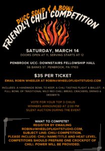 Register by emailing [email protected] and use the Subject line: Chili Competition. Please include: Chili Name/Title and Heat level. Competitors should prepare one crockpot of chili. Power will be provided.